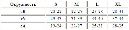 Таблица размеров