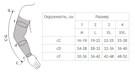 C-G - длина руки от запястья до подмышечной области (43-47 см)